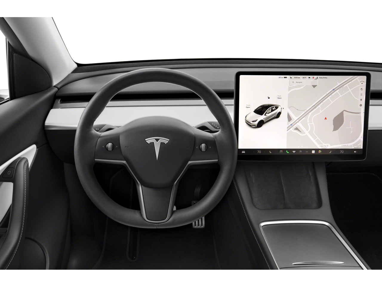 Backup Camera, Model Y Long Range, 1-Speed Automatic, AWD, White/Black w/Premium Seat Trim.