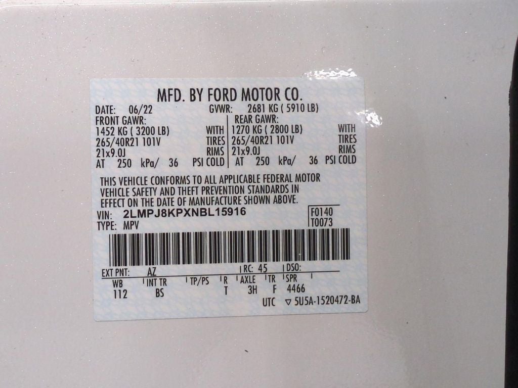 Backup Camera, 2.7L V6 Twin Turbocharged, 8-Speed Automatic, AWD, Medium Slate w/Prem Lthr-Trimmed Heated/Ventilated Captain Seats, Cargo Utility Package, Class II Trailer Tow Package, Equipment Group 202A, Lincoln Co-Pilot360 1.0 Plus Package, Phone As A Key, Power moonroof: Panoramic Vista Roof, Ultimate Package, Voice Activated Navigation System, Wheels: 21 Premium Painted Bright Mach Aluminum.