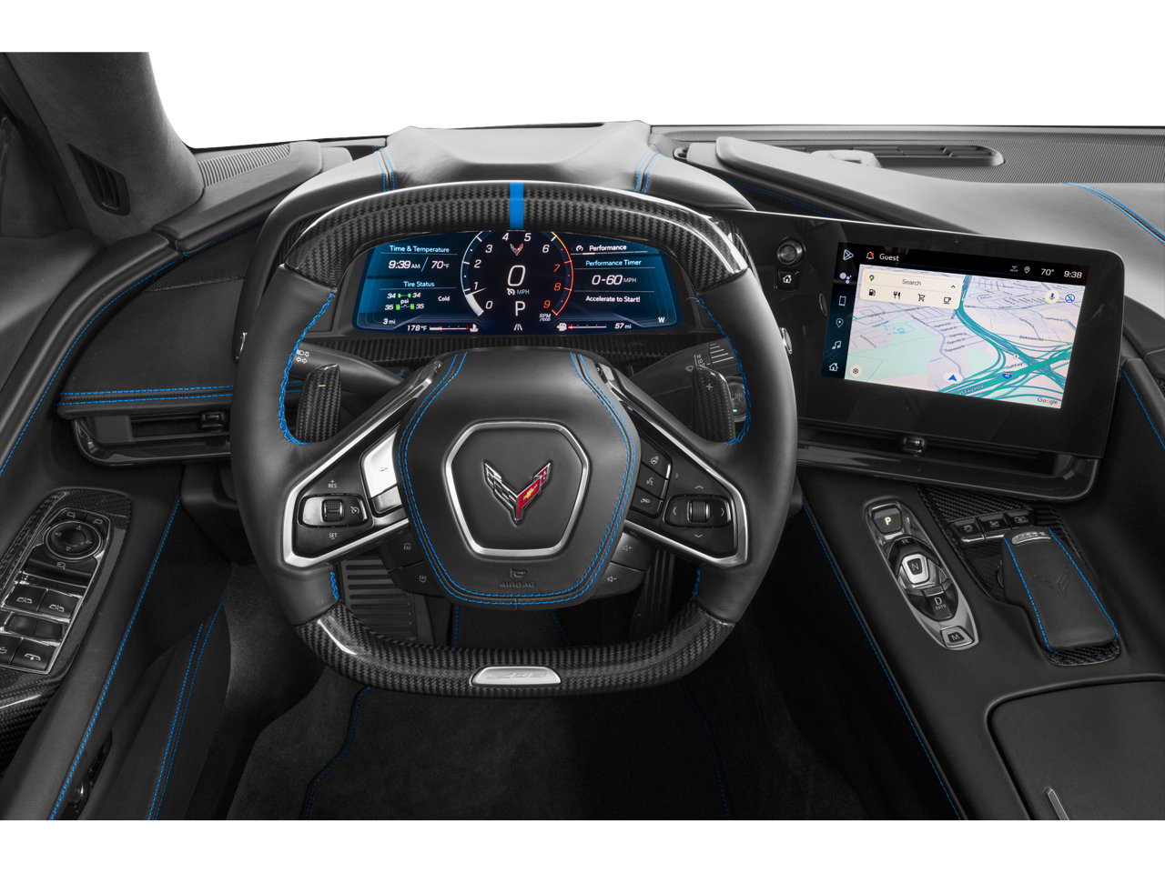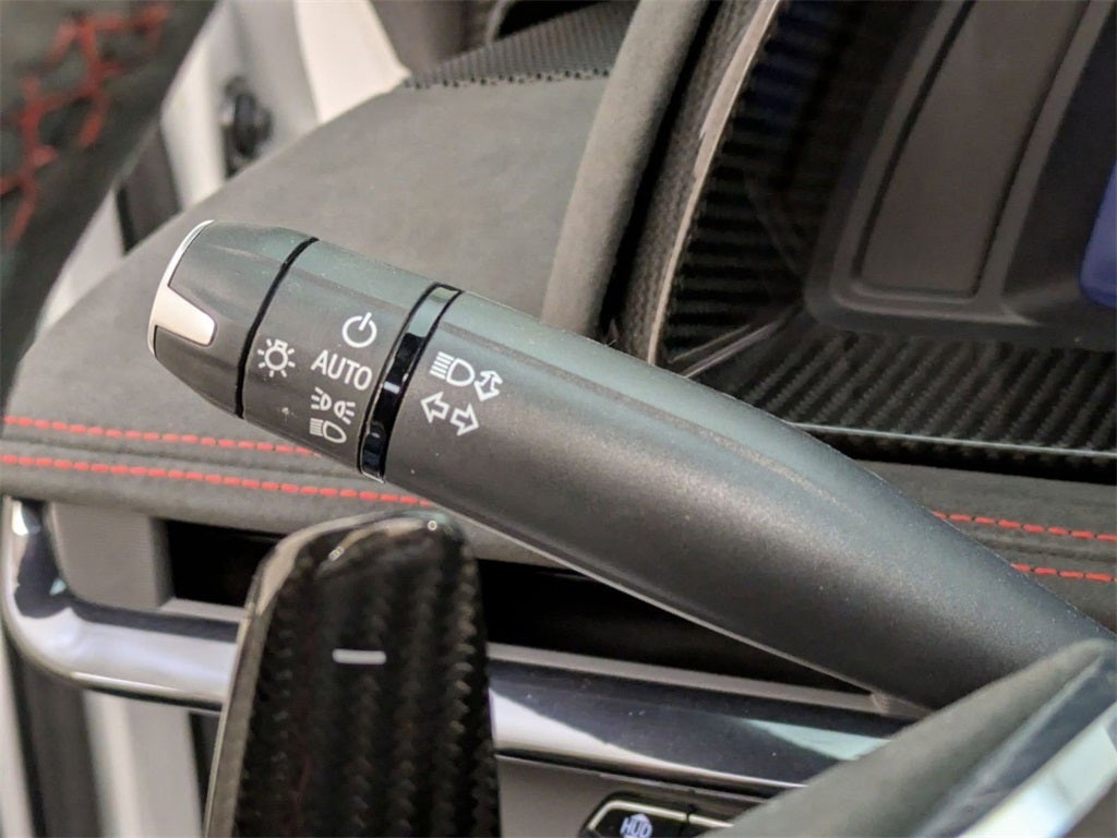 - Steering wheel, carbon fiber and leather-wrapped