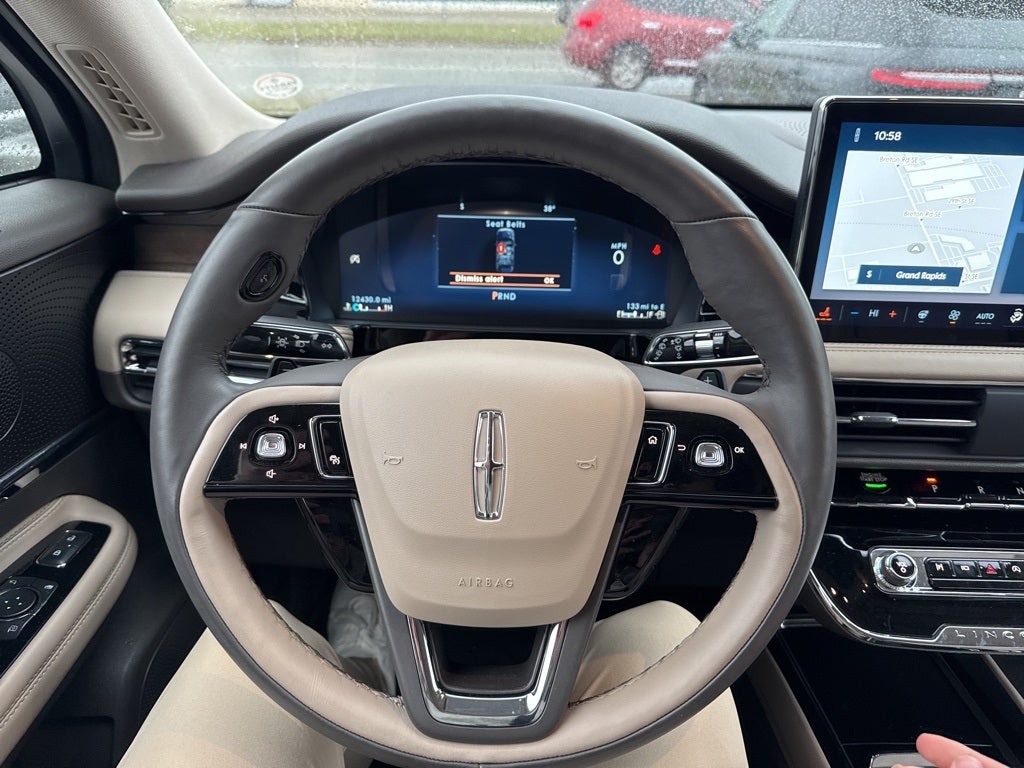 Backup Camera, 8-Speed Automatic, AWD, Sandstone w/Micro-Perforated Lincoln Soft Touch Seats, 60/40 EasyFold Rear Seat w/Power Seatback Release, Body-Color Exterior Elements, Equipment Group 201A, Frameless Auto Dimming Rearview Mirror, Hands-Free Liftgate, Heated Sideview Mirrors, Heated Steering Wheel, Heated/Ventilated Driver & Front Passenger Seats, Jet Appearance Package, Navigation system: Connected Navigation (3-year trial), Panoramic Vista Roof w/Power Shade, Phone As A Key (PAAK), Pillar Black Exterior Elements, Power Tilt/Telescoping Steering Column w/Memory, Rain Sensing Wipers, Universal Garage Door Opener, Wheels: 20 Monochromatic Black Aluminum, Windshield Wiper De-Icer, Wireless Charging Pad.
