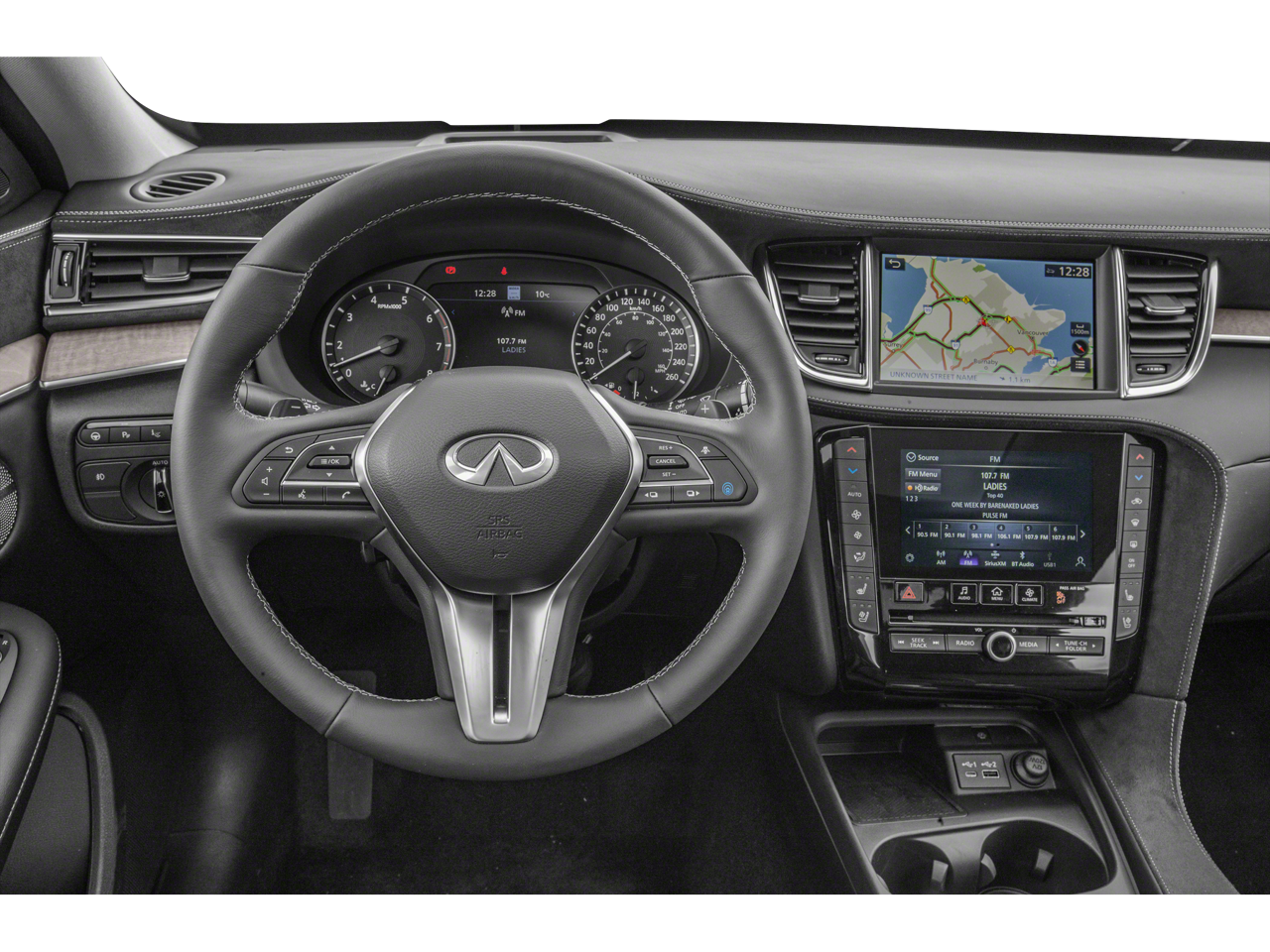 - Radio: Bose Performance Series Audio System -inc: 16 speakers, INFINITI InTouch, INFINITI InTouch services, INFINITI InTouch dual display system w/upper 8" and lower 7" HD touch screens, wireless Apple CarPlay, Android Auto, HD Radio technology, SiriusXM radio w/advanced audio features and 90-day complimentary trial, SiriusXM Travel Link w/90-day complimentary trial, INFINITI voice recognition, Siri Eyes Free, Wi-Fi hotspot, active noise cancellation, Bluetooth® hands-free phone system and streaming audio via Bluetooth®