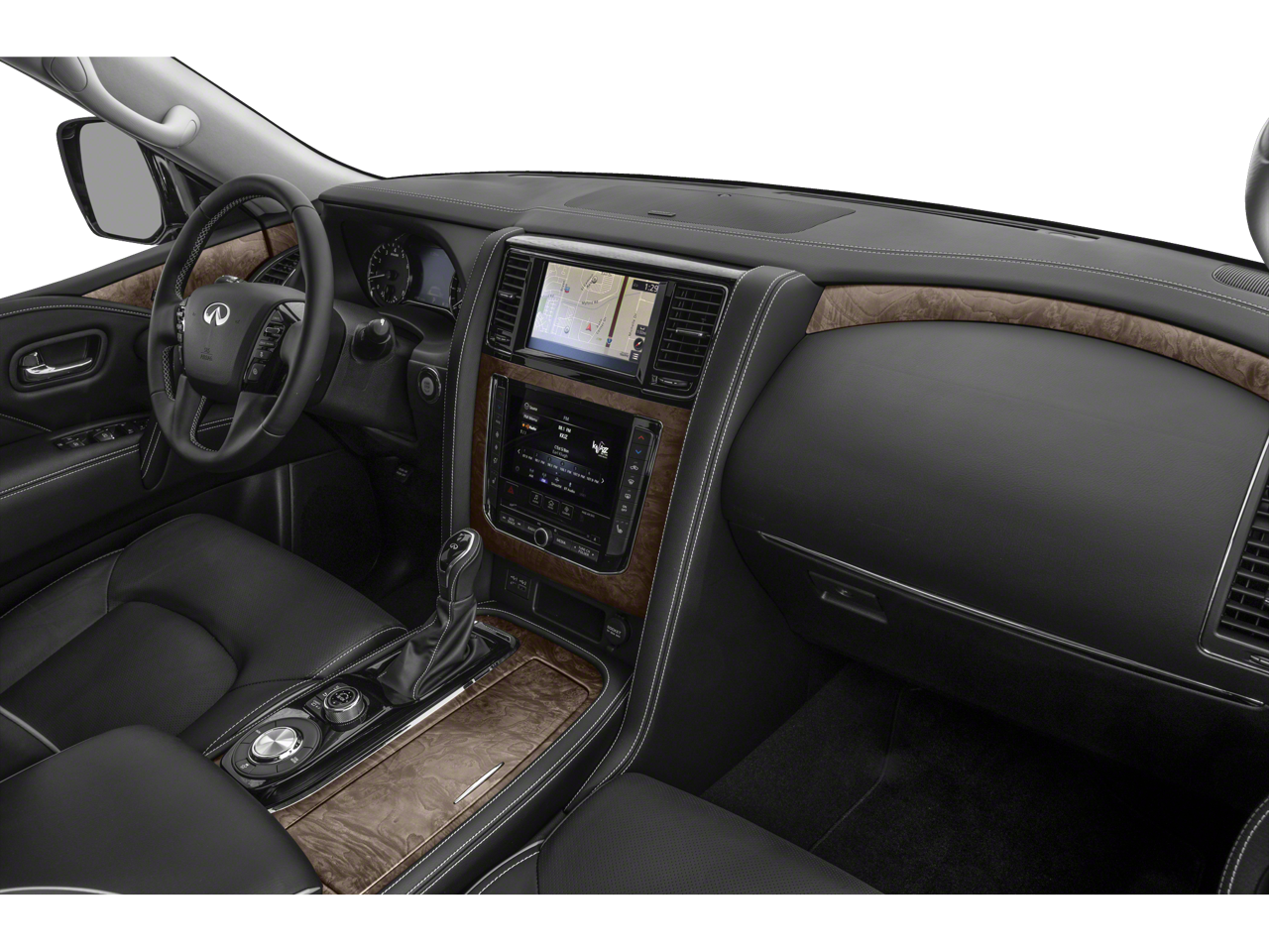 - Radio: Bose Premium Audio System w/13 Speakers -inc: driver's audio stage, speed-sensitive volume control, INFINITI InTouch 12.3" interactive display, INFINITI InTouch services (1-year premium trial and 5-year select trial), INFINITI navigation w/lane guidance and 3D building graphics, MapCare w/over-the-air update compatibility (5-year trial period), premium traffic w/live traffic information (5-year trial period), TomTom weather (5-year trial period), HD radio technology, Apple CarPlay w/wireless Apple CarPlay integration, Android Auto, Siri Eyes Free, Wi-Fi hotspot (30-day or 1GB trial, whichever comes first), Alexa built-in, SiriusXM radio (3-month trial period), SiriusXM Traffic (3-month trial period), SiriusXM Travel Link (3-month trial period): weather, fuel prices, stock prices, sports scores, movie listings and parking, over-the-air head unit update capability (5-year trial period), INFINITI Voice recognition for audio, navigation, Bluetooth® and vehicle information, Bluetooth® hands-free phone system and streaming audio, hands-free text messaging assistant, 2x USB ports for compatible devices for audio streaming and wireless phone charger