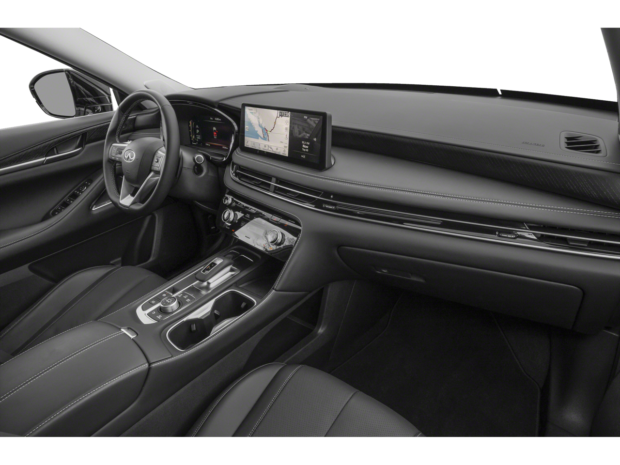 - Radio: Bose Performance Series -inc: 17 speakers, INFINITI InTouch 12.3" interactive display w/navigation (includes mapcare and premium traffic), INFINITI InTouch w/wireless Apple CarPlay integration and Android Auto (includes Bluetooth®), HD Radio technology, SiriusXM radio, WiFi hotspot, INFINITI voice recognition w/Siri Eyes Free/Google Assistant, INFINITI InTouch services, Active Noise Cancellation (ANC), Bluetooth® hands-free phone/voice control switches, data capable type-A and type C USB connection ports and steering wheel audio controls