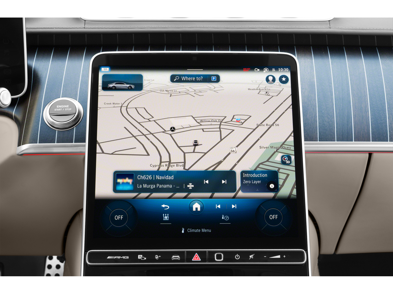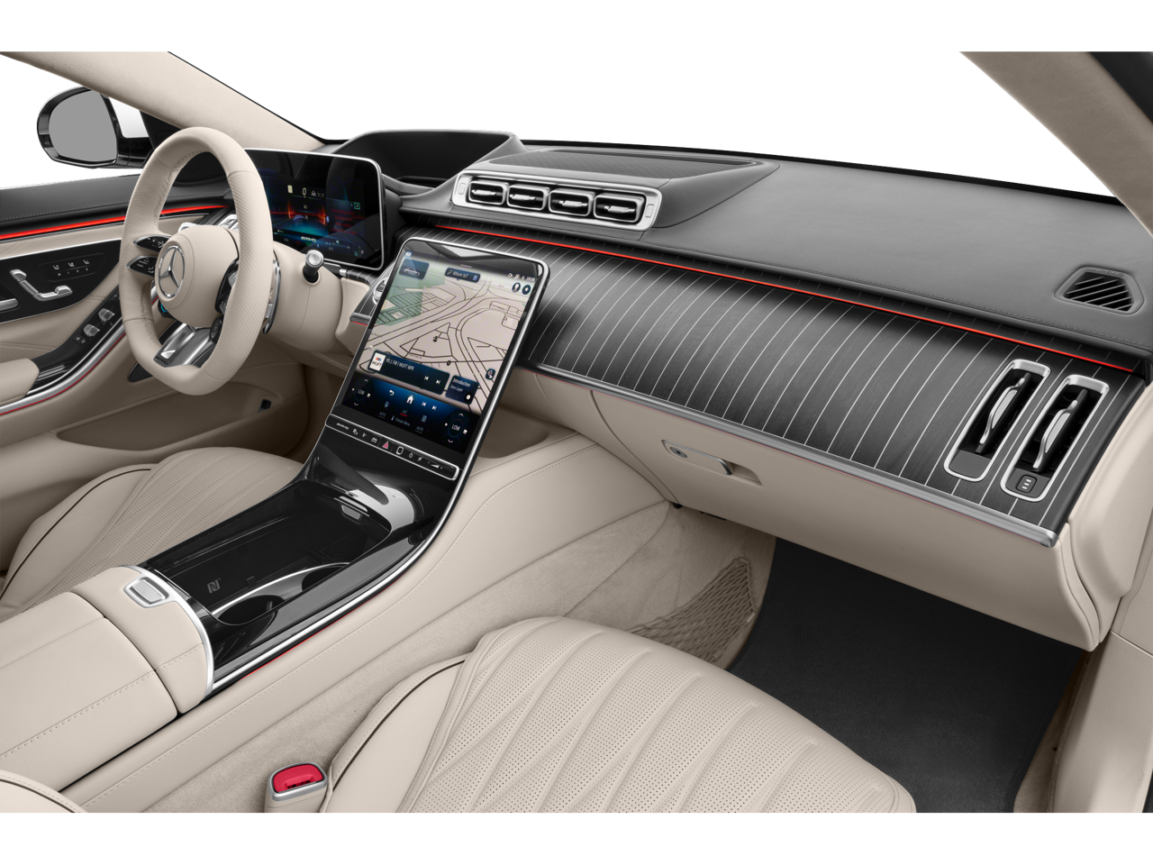 - Radio: Burmester 3D Surround Sound System -inc: sound personalization, 12.8" OLED touchscreen center display, MBUX w/navigation and 'Hey Mercedes' voice control, augmented video for navigation, front wireless charging, wireless smartphone integration (Apple CarPlay, Android Auto), 8 USB-C ports (4 front, 4 rear), SiriusXM extended subscription and online music streaming